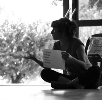 A partir de thématiques choisies, alimentées par des références littéraires, poétiques et picturales, Nisrine propose des consignes qui mettent en mouvement les corps. De ces formes dans l'espace naît une chorégraphie collective, tissée des singularités des uns et des autres.